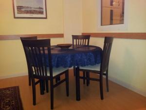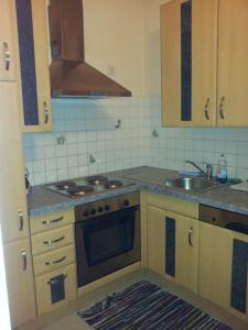 Das Apartment bietet vier Schlafplätze im einzigen großen Zimmer sowie eine voll ausgestattete Küche mit Herdplatte, Kühlschrank, Geschirrspüler, Backofen, Mikrowelle, Kaffeemaschine und sämtlichem notwendigen Kochgeschirr zur Zubereitung von Mahlzeiten. Zusätzliche Ausstattungsmerkmale umfassen eine Waschmaschine, einen Wäscheständer, einen Sitzbereich mit Esstisch sowie einen Arbeitsplatz, Heizungssystem und Wecker für den Komfort während des Aufenthalts.