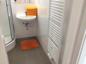 Das Apartment besteht aus einem Schlafzimmer mit einem Bett sowie einer angrenzenden Küchenzeile, die voll ausgestattet ist mit Kochfeld, Kühlschrank, Geschirrspüler, Mikrowelle, Kaffeemaschine und Kochutensilien für die Selbstverpflegung. Zur weiteren Ausstattung gehören Handtücher, Bettwäsche sowie Sitzgelegenheiten auf dem Sofa, praktische Ausstattungsmerkmale wie Bügeleisen und Kleiderschrank sind ebenfalls vorhanden.