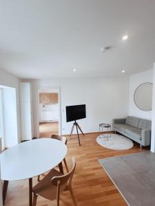 Die Unterkunft verfügt über ein Schlafzimmer mit einem Bett, einen Sitzbereich mit Sofa sowie einen Kleiderschrank. Zur Ausstattung gehören Heizung und Parkettboden für Komfort. Die Küche ist voll ausgestattet mit Kochfeld, Backofen, Kühlschrank, Geschirrspüler, Kaffeemaschine, Wasserkocher, Toaster sowie Tee- und Kaffeezubereitungsmöglichkeiten inklusive Küchenutensilien und einem Esstisch.