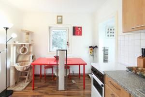 Zur gemeinsamen Nutzung steht eine voll ausgestattete Küche bereit mit Backofen, Herdplatte, Kühlschrank, Mikrowelle, Toaster, Kaffeemaschine sowie Wasserkocher inklusive Küchenutensilien sowie Tee- und Kaffeezubereitungsmöglichkeiten. WLAN nutzen die Gäste im gesamten Objekt kostenfrei.