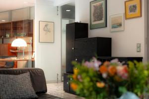 Das gut ausgestattete Apartment umfasst ein Bett, einen Sitzbereich und eine Ankleide. Die Küche ist mit Kochfeld, Kühlschrank, Geschirrspüler, Backofen, Mikrowelle, Toaster sowie Kaffee- und Teezubereitungsmöglichkeiten ausgestattet. Weitere Ausstattungsmerkmale sind Bügelbrett mit Bügeleisen, Waschmaschine mit Trocknerfunktion für Kleidung, Wäscheständer sowie Schlafsofaoptionen inklusive Babybett oder Kinderbett. Zusätzlich sind Heizung und Fliesenboden vorhanden.