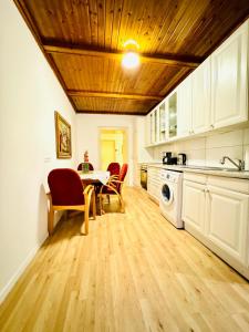 Im Inneren stehen den Gästen vier Schlafzimmer mit insgesamt sieben Betten zur Verfügung sowie ein Badezimmer mit Badewanne und kostenfreien Pflegeprodukten wie Shampoo und Duschgel sowie einem Haartrockner. Die voll ausgestattete Küche beinhaltet einen Kühlschrank sowie Tee- und Kaffeezubereitungsmöglichkeiten und einen Esstisch für gemeinsame Mahlzeiten. Weitere Annehmlichkeiten sind Heizung im gesamten Apartment, Sitzgelegenheiten, ein Arbeitstisch, ein Schlafsofa, eine Waschmaschine sowie synthetische Kopfkissen ohne Federn, Handtücher und Bettwäsche werden bereitgestellt.