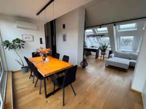 Im 14. Wiener Gemeindebezirk Penzing gelegen, bietet das großzügige Dachterrassen-Apartment Klimaanlage und eine Terrasse mit beeindruckendem Berg- und Gartenblick. Die Einraumwohnung verfügt über einen privaten Parkplatz am Objekt sowie kostenfreies WLAN im gesamten Apartment, was sie zu einem idealen Ausgangspunkt für Besucher macht. Der Schlosspark Schönbrunn befindet sich nur 1,6 km entfernt, das Rosarium weniger als 1 km.