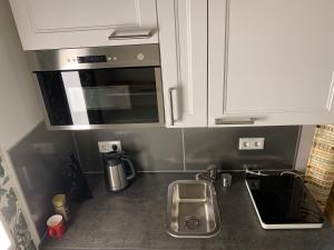 Die Wohnung besitzt ein Schlafzimmer mit Bett und Schlafsofa, ausgestattet mit Parkettboden und einer Sitzecke. Die voll ausgestattete Kochnische beinhaltet Herdplatte, Kühlschrank, Geschirrspüler, Mikrowelle, Toaster, Kaffeemaschine sowie Wasserkocher und Küchenutensilien inklusive Tee- und Kaffeezubereitungsmöglichkeiten. Das Badezimmer verfügt über eine ebenerdige Dusche ohne Stufen sowie kostenlose Pflegeprodukte wie Shampoo und Duschgel.