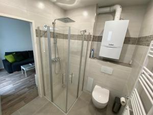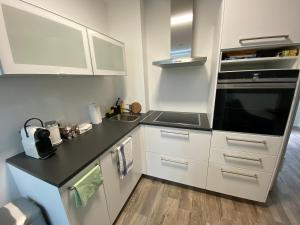 Das Apartment mit einem Schlafzimmer verfügt über ein Wohnzimmer mit Fliesenboden und einem Flachbildfernseher sowie eine ausgestattete Küche mit Herdplatte, Backofen, Geschirrspüler, Kühlschrank, Toaster, Kaffeemaschine, Wasserkocher und vollständigem Küchenzubehör für den Esskomfort. Das Badezimmer ist mit einer begehbaren Dusche ohne Stufen sowie Pflegeprodukten wie Shampoo und Duschgel ausgestattet.