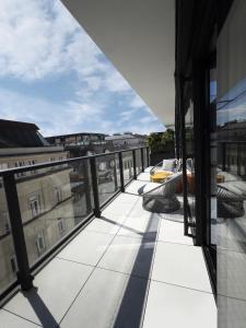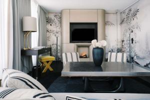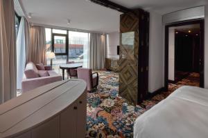 Die Unterkünfte verbinden modernen Komfort mit dem Jugendstil, inspiriert von der Wiener Werkstätte. Die Zimmer verfügen über Klimaanlage, Schallschutz, Flachbildfernseher mit Kabelkanälen, Arbeitstische, Safes, Minibars (gegen Aufpreis), Sofas oder Schlafsofas sowie Kleiderschränke und Sitzbereiche. Die Badezimmer sind mit Badewannen oder Duschen ausgestattet und bieten kostenlose Pflegeprodukte wie Shampoo und Conditioner. Einige Zimmer verfügen über Balkone oder Erkerfenster mit Stadtblick.