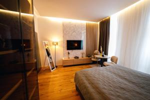 Zu den Annehmlichkeiten im Zimmer zählen ein Flachbildfernseher mit Steckdosen am Bett sowie kostenloses WLAN im gesamten Apartment für uneingeschränkte Konnektivität. Die Küche ist vollständig ausgestattet mit Backofen, Herdplatte, Kühlschrank, Mikrowelle, Toaster, Kaffeemaschine, Wasserkocher sowie Tee- und Kaffeezubehör einschließlich sämtlicher notwendiger Küchenutensilien und einem Esstisch.