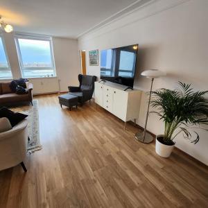 Den Gästen stehen kostenloses WLAN im gesamten Apartment sowie ein Flachbildfernseher im Wohnbereich zur Verfügung. Für zusätzlichen Komfort sorgen Teppichboden, Heizung und Bügeleisen. Praktische Extras umfassen Waschmaschine, Kleiderschrank/Schränke mit synthetischen Daunenkissen und Federnkissen sowie Handtücher und Bettwäsche. Ein Babybett/Kinderbett ist ebenfalls vorhanden, zudem gibt es einen Schreibtisch zum Arbeiten.