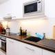 El alojamiento incluye un dormitorio con una cama, suelo de madera o parquet y calefacción para mayor confort. Los huéspedes disponen de cocina americana totalmente equipada con horno, placa vitrocerámica, frigorífico, lavavajillas, microondas, tostadora, cafetera eléctrica y hervidor eléctrico, también hay infusiones disponibles junto con utensilios y mesa comedor.