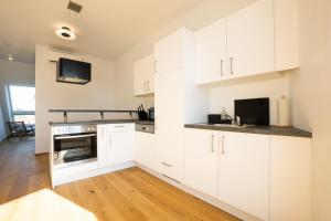 Das klimatisierte Penthouse umfasst ein Schlafzimmer mit allergikerfreundlichen Kissen und Bettwäsche sowie ein Badezimmer mit Badewanne oder Dusche und Haartrockner. Die voll ausgestattete Küche verfügt über moderne Geräte wie Backofen, Herdplatte, Kühlschrank, Geschirrspüler, Mikrowelle sowie Kaffee- und Teezubereitungsmöglichkeiten plus einen Esstisch für Komfort.