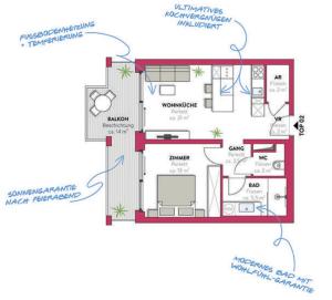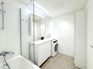 Jede Einheit verfügt über einen eigenen Eingang sowie eine voll ausgestattete Küche mit Kochfeld, Kühlschrank, Geschirrspüler, Backofen, Toaster, Kaffeemaschine und Wasserkocher sowie Küchenutensilien und Esstisch. Die Wohnungen bieten ein oder zwei Schlafzimmer mit insgesamt fünf Betten in allen Einheiten. Die Badezimmer sind ausgestattet mit Dusche oder Badewanne, Haartrocknern und kostenfreien Pflegeprodukten. Weitere Ausstattungsmerkmale umfassen Sitzbereiche, Sofas oder Schlafsofas, Waschmaschinen, Bügeleinrichtungen, Kleiderschränke sowie Heizung und allergikerfreundliche Kissen ohne Federn.