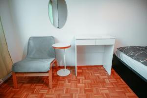 Die Wohnung verfügt über Parkettboden in den Wohnbereichen und Fliesenböden in ausgewählten Räumen sowie eine Heizung für zusätzlichen Komfort. Zur Ausstattung gehört ein Sitzbereich mit Flachbildfernseher sowie ein Arbeitstisch für Gäste mit Arbeitsbedarf.
