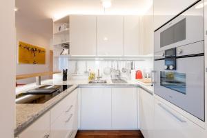 Die großzügige Wohnung umfasst drei Schlafzimmer, zwei Badezimmer mit ebenerdigen Duschen und Badewannen, ein Wohnzimmer mit Flachbildfernseher sowie eine ausgestattete Küche mit Geschirrspüler, Backofen, Kochfeld, Mikrowelle sowie Tee- und Kaffeezubereitungsmöglichkeiten. Weitere Ausstattungsmerkmale sind eine individuell regulierbare Klimaanlage in jedem Raum, Bügeleisen mit Bügelbrett, Safe für Laptops sowie auf Anfrage verfügbar Babybett oder Kinderkrippe. Sitzbereiche sind auf Parkettboden vorhanden.