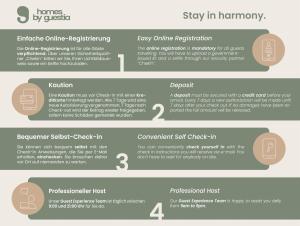 Les hôtes peuvent profiter de téléviseurs plats satellite avec chaînes câblées ainsi que des canapés confortables pouvant se transformer en lits supplémentaires si besoin. Le chauffage assure le confort thermique tandis qu’un bureau permet aux voyageurs professionnels de travailler durant leur séjour. Les mesures de sécurité comprennent détecteurs de fumée et extincteurs dans chaque unité. Les amateurs de vélo trouveront par ailleurs plusieurs possibilités pour découvrir la ville sur deux roues tout autour.