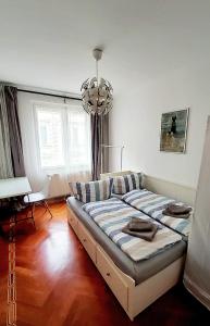 Großzügige Wohnung im 5. Stock mit Parkettboden und hellem, großem Wohnzimmer. Die Schlafzimmer waren gemütlich und alles sehr sauber. Früher Check-in wurde problemlos ermöglicht, die Kommunikation war super. Zentral gelegen, direkt bei U-Bahn, Tram und Hop-on-Hop-off-Bus. Viele Restaurants und Supermärkte in der Nähe machten den Aufenthalt bequem.