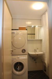 Im Apartment finden Gäste zwei Betten sowie eine voll ausgestattete Küche mit Kochfeld, Kühlschrank, Geschirrspüler, Backofen, Mikrowelle sowie Tee- und Kaffeezubereitungsmöglichkeiten vor. Zur Ausstattung gehören außerdem eine Waschmaschine und individuell regulierbare Klimaanlage im Zimmer. Weitere Annehmlichkeiten sind ein Bügeleisen, ein Schreibtisch zum Arbeiten, eine Sofaecke sowie Stauraum in Form eines Kleiderschranks oder einer Garderobe. Die Räume sind mit Teppichboden ausgelegt und verfügen über Heizung.
