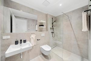 Im Apartment stehen zwei Betten sowie eine vollständig ausgestattete Küche mit modernen Geräten zur Verfügung: Kochfeld, Kühlschrank, Geschirrspüler, Mikrowelle, Toaster und Kaffeemaschine, ergänzt durch Küchenutensilien sowie Tee- und Kaffeezubereitungsmöglichkeiten. Das Badezimmer verfügt über eine begehbare Dusche ohne Einstiegshöhe sowie kostenfreie Pflegeprodukte wie Duschgel und Shampoo sowie einen Fön.