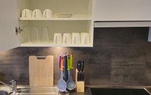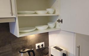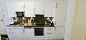 Das geräumige Apartment umfasst zwei Schlafzimmer sowie ein Wohnzimmer mit insgesamt drei Betten. Es verfügt über eine voll ausgestattete Küche mit Backofen, Kühlschrank, Kochfeld, Mikrowelle, Geschirrspüler sowie einer Kaffeemaschine und Einrichtungen zur Tee- und Kaffeezubereitung. Ein Esstisch ist ebenfalls vorhanden. Das Badezimmer ist mit einer Dusche ausgestattet und bietet kostenfreie Pflegeprodukte inklusive Shampoo und Conditioner sowie einen Haartrockner.